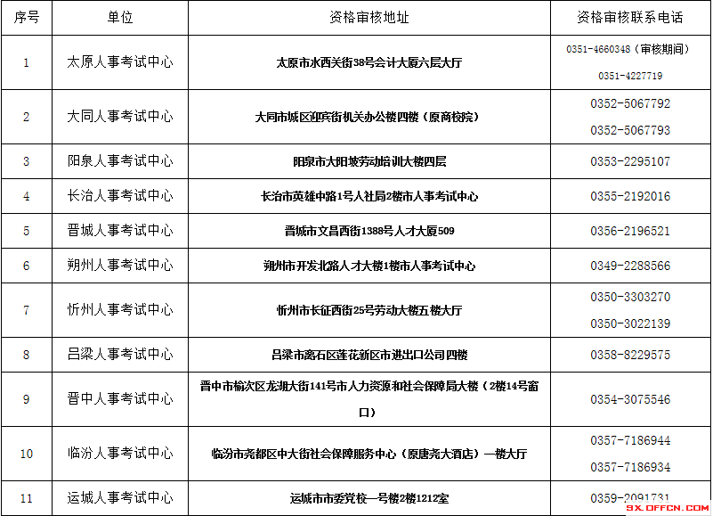 各市人事考试中心资格审核地址及联系电话